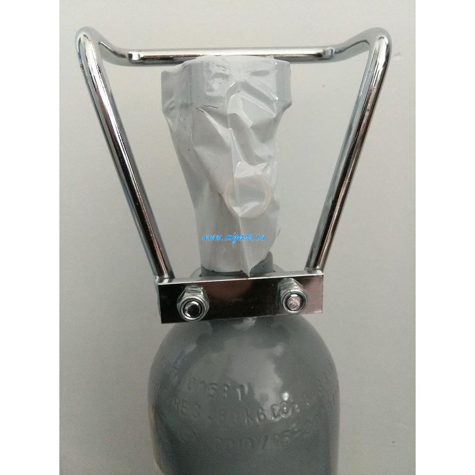 Fľaša CO2 s objemom 1,5 kg, sivé alebo zelené prevedenie, je už naplnená. Životnosť fľaše je cca 40 rokov, priemer 105 mm; hmotnosť prázdnej je cca 3,66 kg; tlaková skúška na 10 rokov, fľaša samostatne stojí, fľaša je opakovane plniteľná, pri kúpe CO2 fľaše je náplň v hodnote 5,59 Eur v cene . Fľaša nie je vybavená kovovou ochranou ventyla. */ Výška fľaše aj s kovovou ochranou (rúčkou) je 47 mm. */