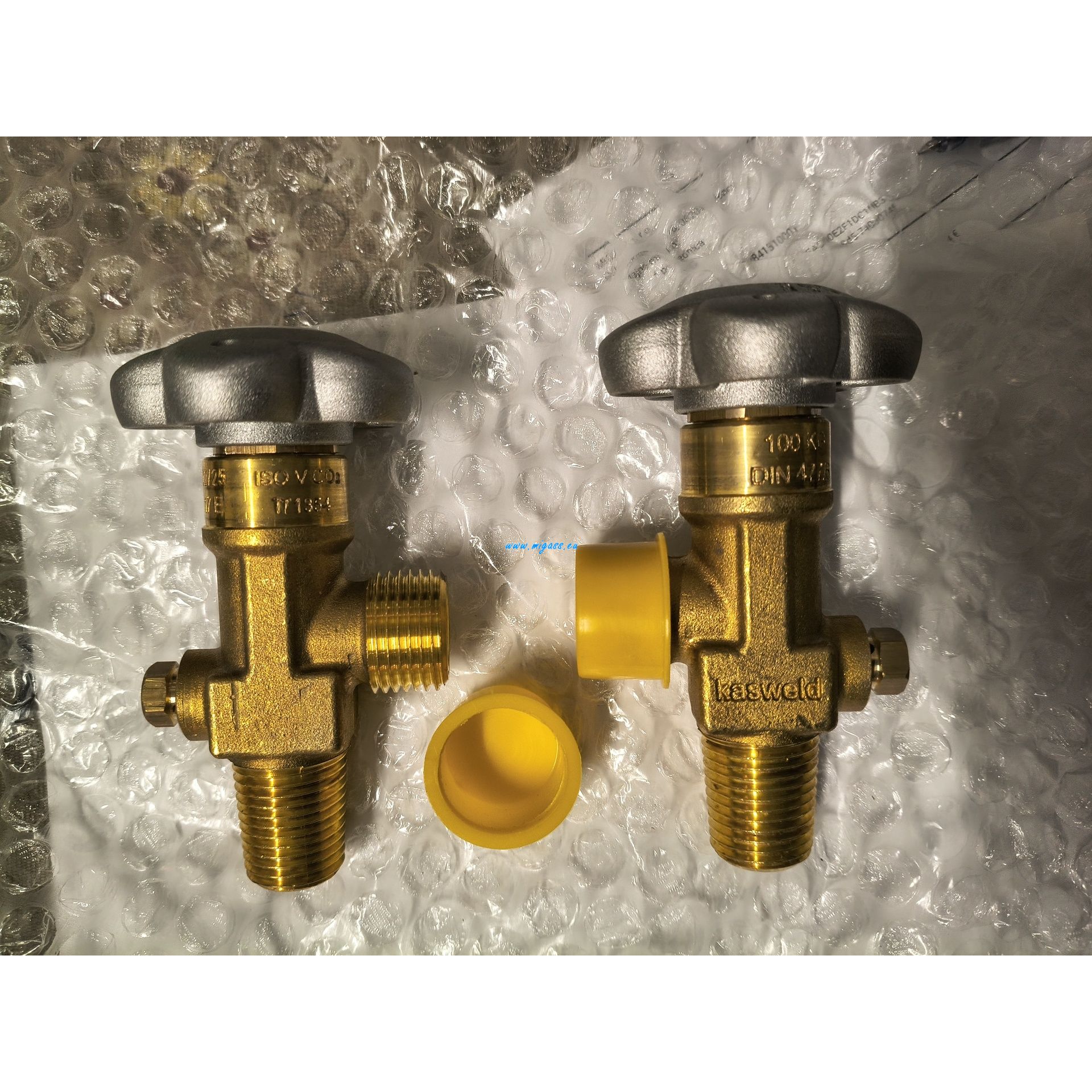 Ventil CO2 s výstupným závitom 21,8*1/14" (malý závit). Fľašový závit má veľkosť 17E, určený je na malé fľaše. Prietržná poistka je na 190 Bar.